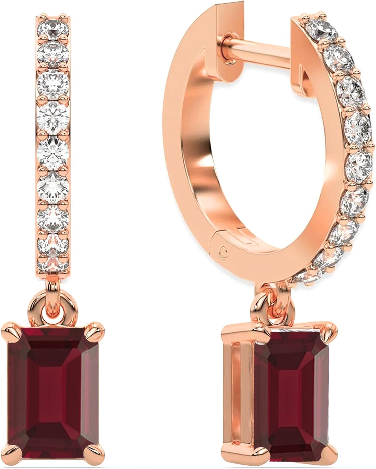 This Handmade Solitaire Drop Dangle Hoop Earrings are made from high-quality 925 sterling silver, known for its lustrous apEmeraldance and durability.. It is available in 14K White, Yellow, and Rose Gold Plating with Highly Glossy Finished. It features Simulated Emerald Cut Blue Sapphire & White Diamond Stones set in Prong setting. Perfect for any occasion.