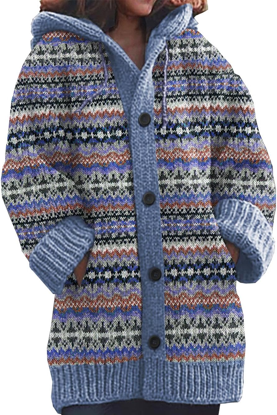 Wrap yourself in warmth and charm with this Women’s Hooded Knitted Cardigan, designed for effortless comfort and bohemian elegance. Crafted from a soft, breathable knit, each piece features distinctive ethnic, floral, or gradient patterns that express personality and style. The hooded design adds cozy practicality, while the relaxed silhouette makes it perfect for layering over casual or dressy looks. Whether you’re strolling through autumn leaves, sipping coffee on a cool morning, or cozying up at home, this cardigan blends comfort, style, and individuality in every stitch. Pair it with jeans, leggings, or boots for a timeless cold-weather look.