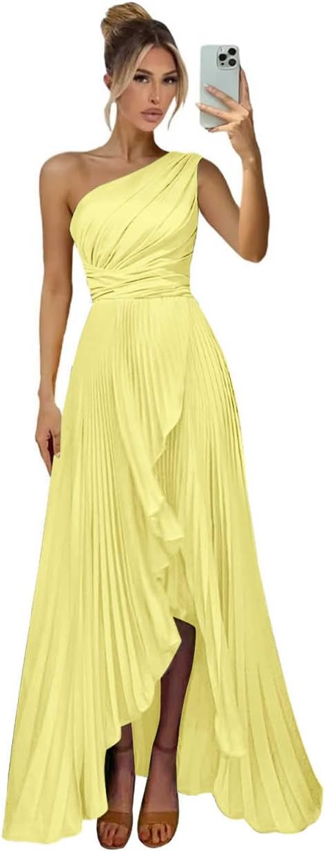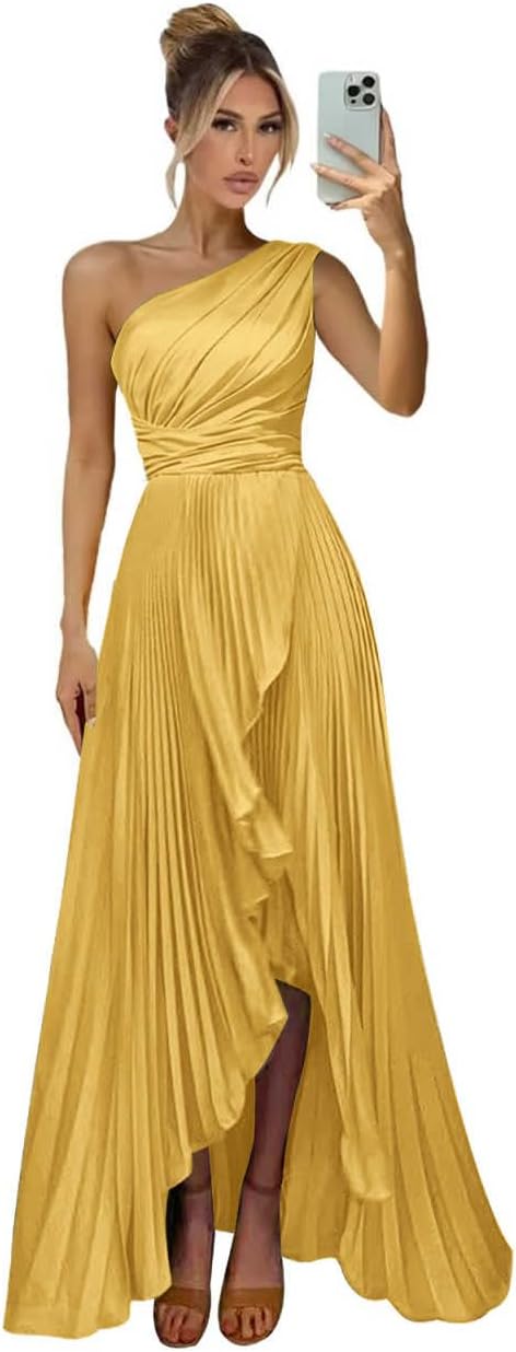 Welcome to Plakend, the store mainly sells bridesmaid dresses, prom dresses, flower girl dress and all kind of formal dress for women Linearity: Flowy A-Line Feature: Satin, One Shoulder, Sleeveless, Pleated, Empire Waist, High Low A-Line, with Slit, Long Dress Boho Gown, Ruffles,Off the Shoulder, Tea Length Formal Dress Back: Lace Up Backless 1.Please confirm your size with us after placing your order. 2.Of course, we also support free customized size, you can tell us your size after you place an order, we will make the dress according to your size. Bust:_____ inch Waist:_____ inch Hips:_____ inch Shoulder to Floor: _____ inch 3.If you have any questions, please ask us, we will provide you with the most effective solution as soon as possible!