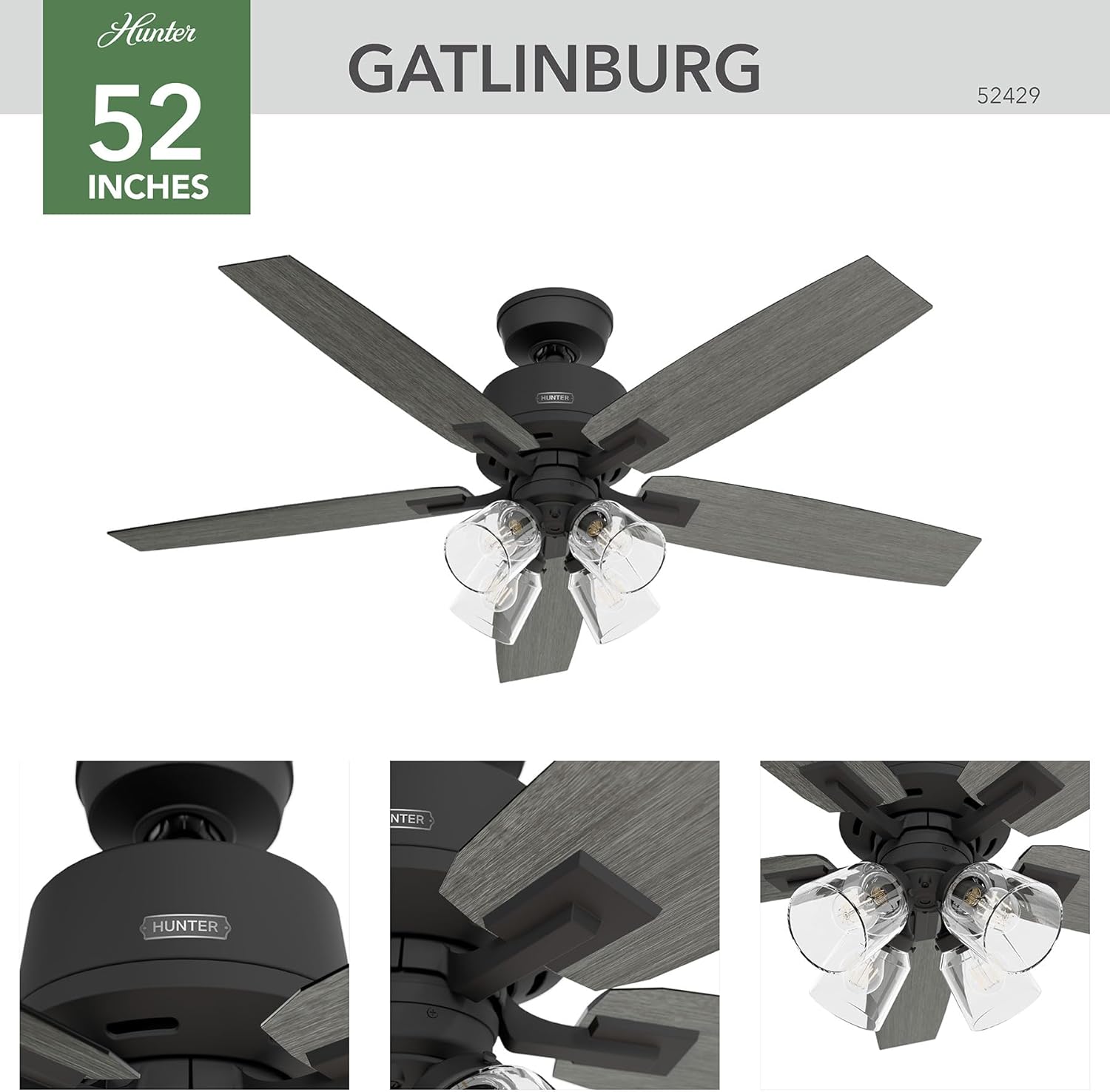 A graceful spin on tradition, the Gatlinburg ceiling fan is both casual and transitional in style. The simplistic design matches the soothing look of the multiple finish while seamlessly blending into a variety of decors. Updating your room is a breeze with our HunterExpress® fans, making installation as easy as 1-2-3. Great in a bedroom or office it's the perfect match for almost any space. Mix and match with modern lighting from our lighting collections. We have everything you need to finish your rooms with style.